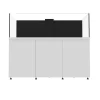 This rimless glass aquarium sits on a modern cabinet, available in black or white. This aquarium is designed for saltwater use freshwater use. In addition, it includes sump filtration made of glass. Evaporation is a common problem for rimless tanks. Sitting on the sump, is an auto top off to replenish the water. The power cord will match the chosen color of your tank, making this the cleanest display you’ve ever had.